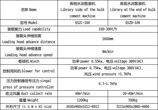 庫底水泥散裝機參數(shù)